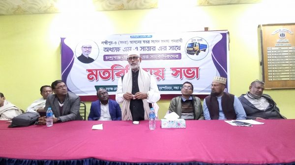 লক্ষ্মীপুর প্রতিনিধি : দ্বাদশ সংসদ নির্বাচনকে কেন্দ্র করে লক্ষ্মীপুর-৩ (সদর) আসনের স্বতন্ত্র সংসদ সদস্য পদপ্রার্থী (ট্রাক প্রতীক) অধ্যক্ষ এম এ সাত্তার চন্দ্রগঞ্জ প্রেসক্লাবের সাংবাদিকদের সাথে মতবিনিময় করেন। বৃহস্পতিবার রাতে চন্দ্রগঞ্জ