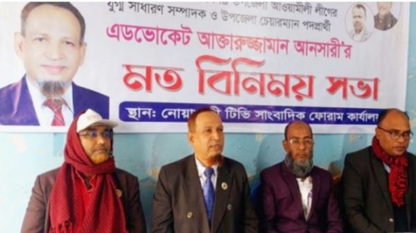 নোয়াখালী প্রতিনিধি: আসন্ন উপজেলা পরিষদ নির্বাচন উপলক্ষে নোয়াখালীর বেগমগঞ্জ উপজেলা পরিষদের চেয়ারম্যান পদপ্রার্থী ও উপজেলা আওয়ামীলীগের যুগ্ম সাধারণ সম্পাদক এডভোকেট আক্তারুজ্জামান আনছারী জেলায় কর্মরত সাংবাদিকদের সাথে মত বিনিময় সভা করেছেন। বৃহস্পতিবার