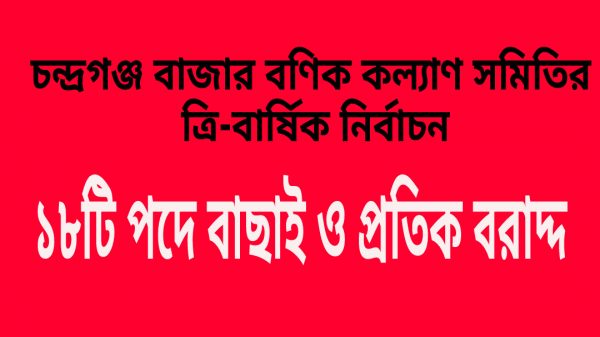 বিশেষ প্রতিনিধি : লক্ষ্মীপুরের চন্দ্রগঞ্জ বাজার বণিক কল্যাণ সমিতির আসন্ন ত্রি-বার্ষিক নির্বাচনে ১৮টি পদে বাছাই ও প্রতিক বরাদ্দ দেওয়া হয়েছে। আজ বুধবার (২৫ জানুয়ারী) দুপুর ১২টা থেকে বিকেল ৪টা পর্যন্ত