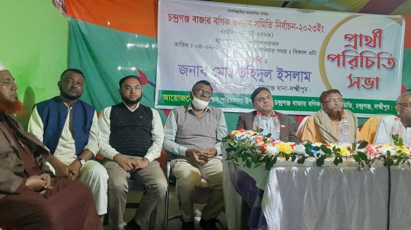 বিশেষ প্রতিনিধি : লক্ষ্মীপুরের ঐতিহ্যবাহী চন্দ্রগঞ্জ বাজার বণিক কল্যাণ সমিতির ত্রি-বার্ষিক নির্বাচন উপলক্ষে প্রার্থীদের পরিচিতি সভা সম্পন্ন হয়েছে। শনিবার (০৪ ফেব্রুয়ারী) সন্ধ্যায় চন্দ্রগঞ্জ বাজার গণমিলনায়তনে এ সভার আয়োজন করা হয়।