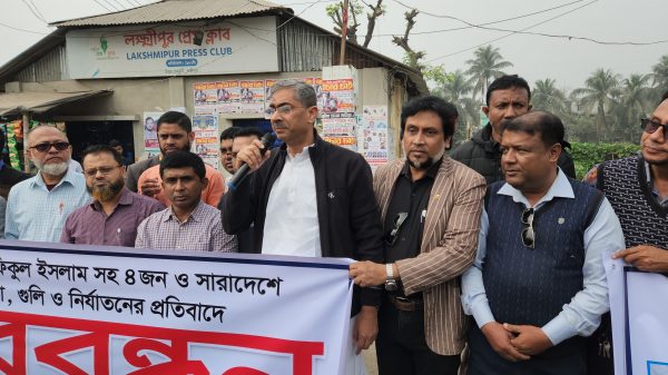 লক্ষ্মীপুরে সাংবাদিকদের ওপর হামলা-গুলির প্রতিবাদে মানববন্ধন -প্রতিদিনের খবর