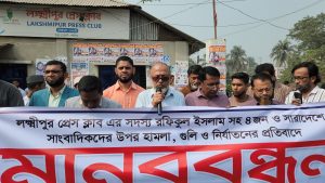 লক্ষ্মীপুরে চার সাংবাদিকসহ সারাদেশে সাংবাদিকদের ওপর হামলার প্রতিবাদে বিক্ষোভ ও মানববন্ধন কর্মসুচি পালন করা হয়েছে।