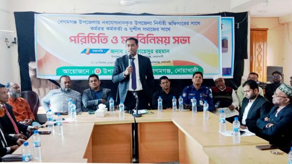 বেগমগঞ্জে নবযোগদানকৃত ইউএনওকে পরিচিতি ও মতবিনিময় সভা অনুষ্ঠিত