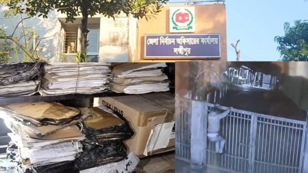 লক্ষ্মীপুর জেলা নির্বাচন কার্যালয়ের একটি স্টোররুমে ভোররাতে পেট্রোল ঢেলে আগুন দেওয়ার ঘটনা ঘটেছে। শনিবার (১৩ ডিসেম্বর) ভোর আনুমানিক ৪টার দিকে এ অগ্নিসংযোগের ঘটনা ঘটে। সিসিটিভি ফুটেজে দেখা গেছে, মাস্ক পরিহিত